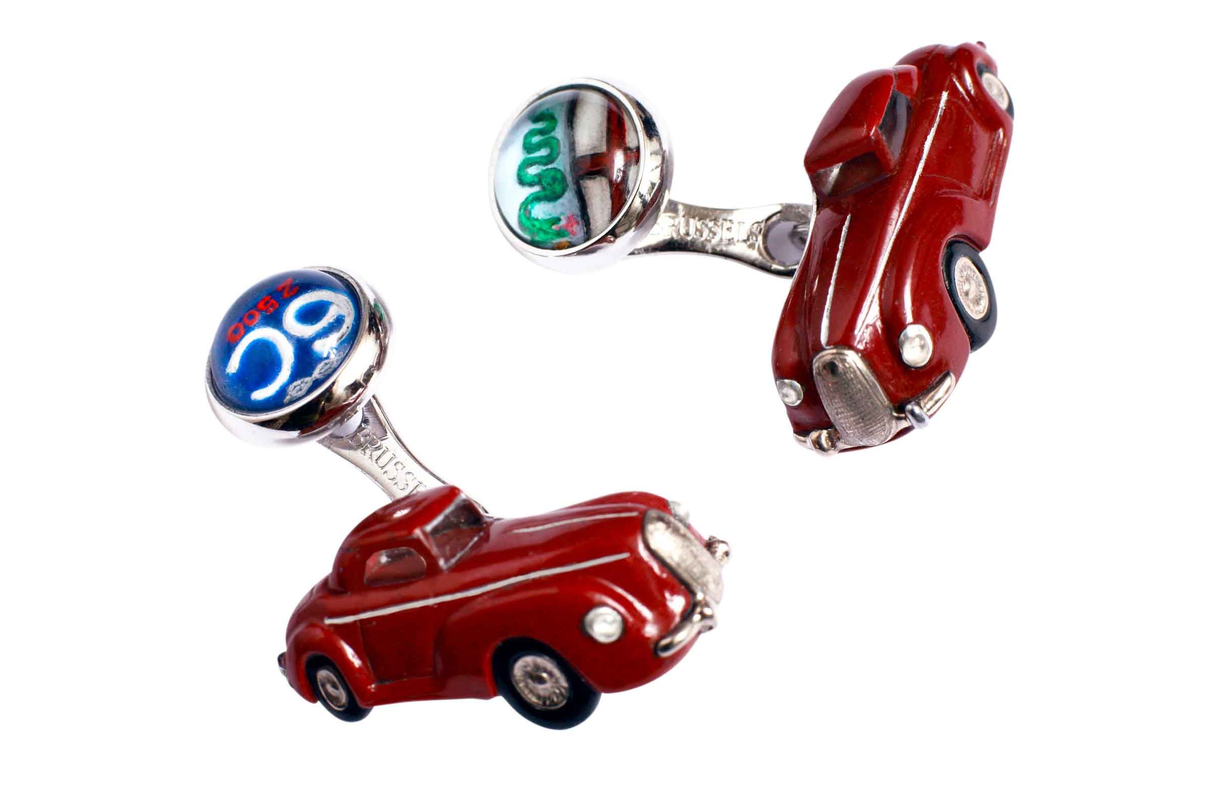 Red Jasper Alfa Romeo cufflinks with white-gold