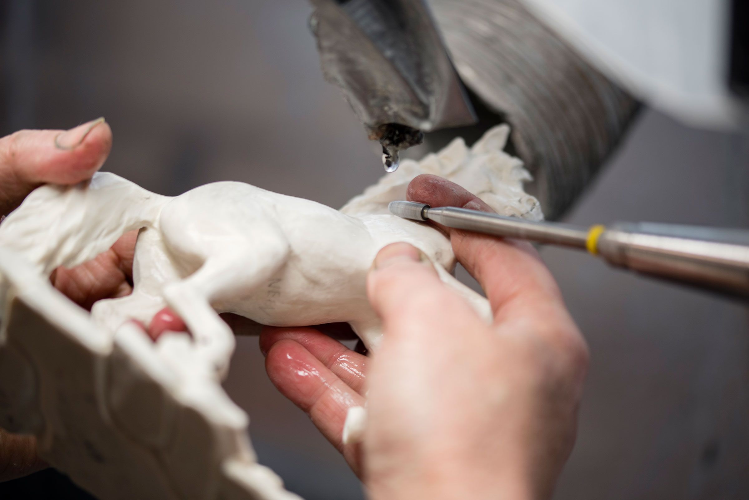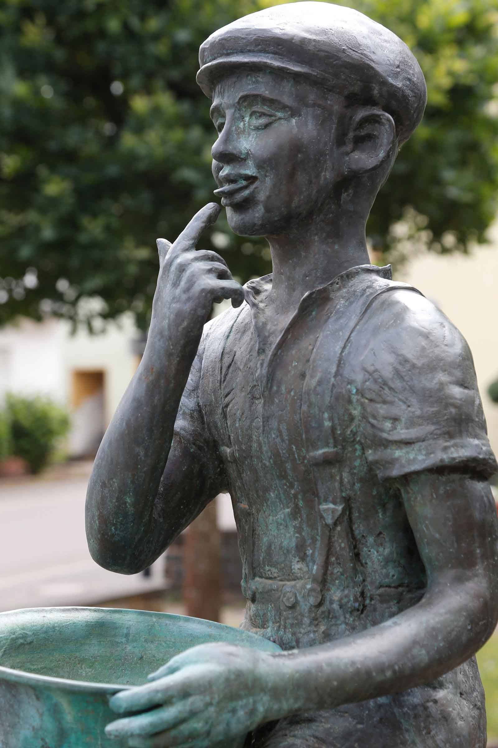 Personifies a town tale in the bronze of a young boy sneaking a lick of cream cheese. Although cast in metal, the boy´s expression of delight, even the chease smear on his finger com alive inspiring the memory of its yummy taste.